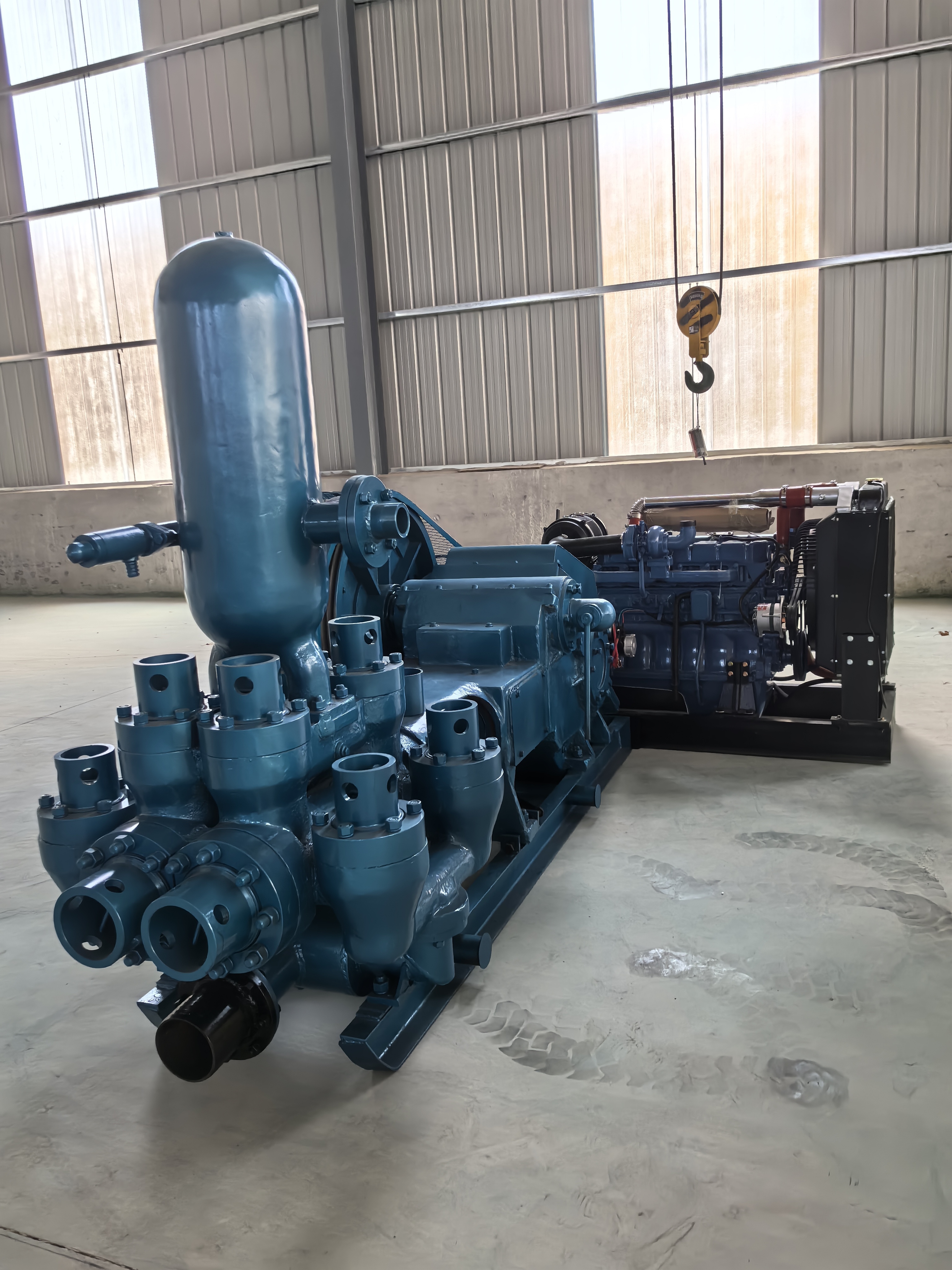 BW850/5 Double-Cylinder Drilling Mud Pump is widely used to press flushing fluid into the hole during geological drilling and is used together with large-diameter drilling rigs with a depth of 200 to 600 meters, co może poprawić wydajność i jakość wiertarki.